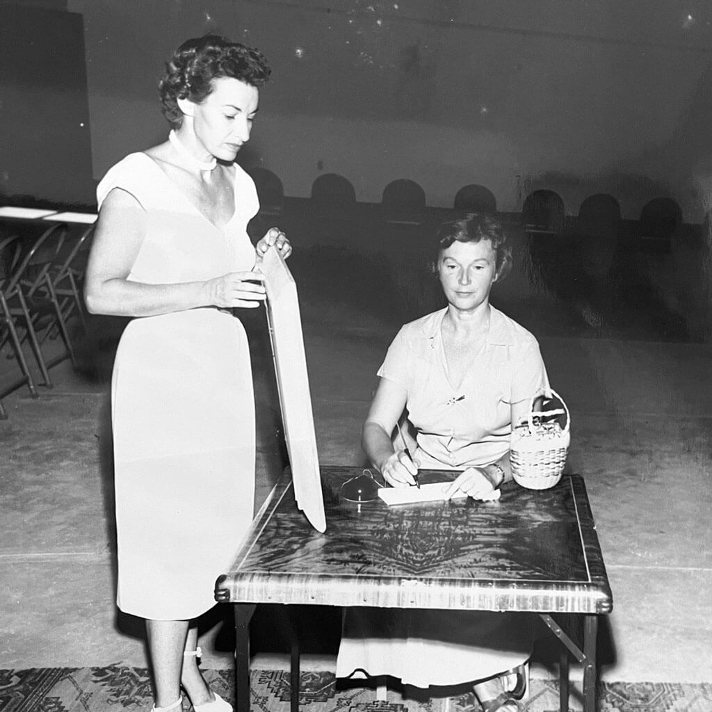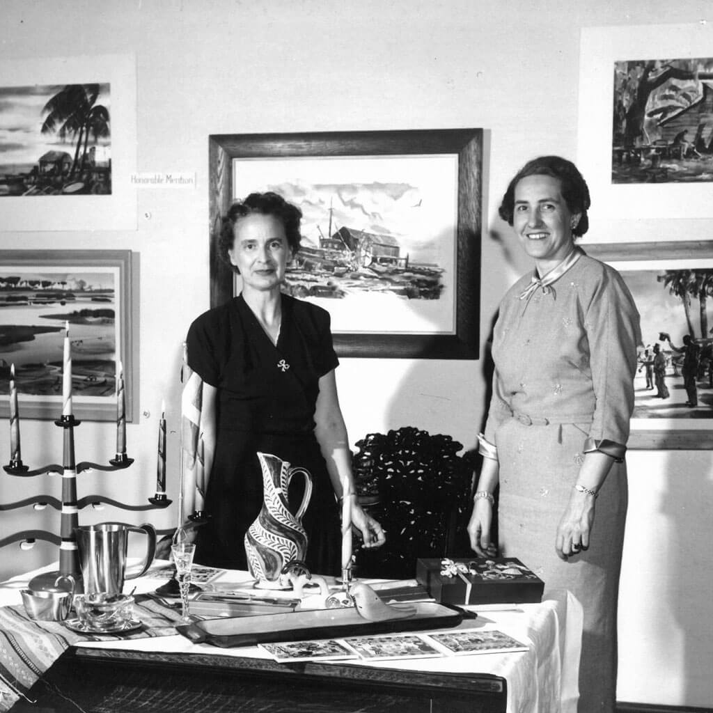 In 1948, the club officially changed its name to the St. Augustine Art Association (STAAA). Membership was at an all-time high–over 500 members–and after moving around from one location to another over the years, it was time for the Art Association to build its own space. The land on Marine Street had been purchased by the organization in 1945 from Hildegarde Mueller-Uri’s parents and the building–what is now the main gallery–opened in February 1954.