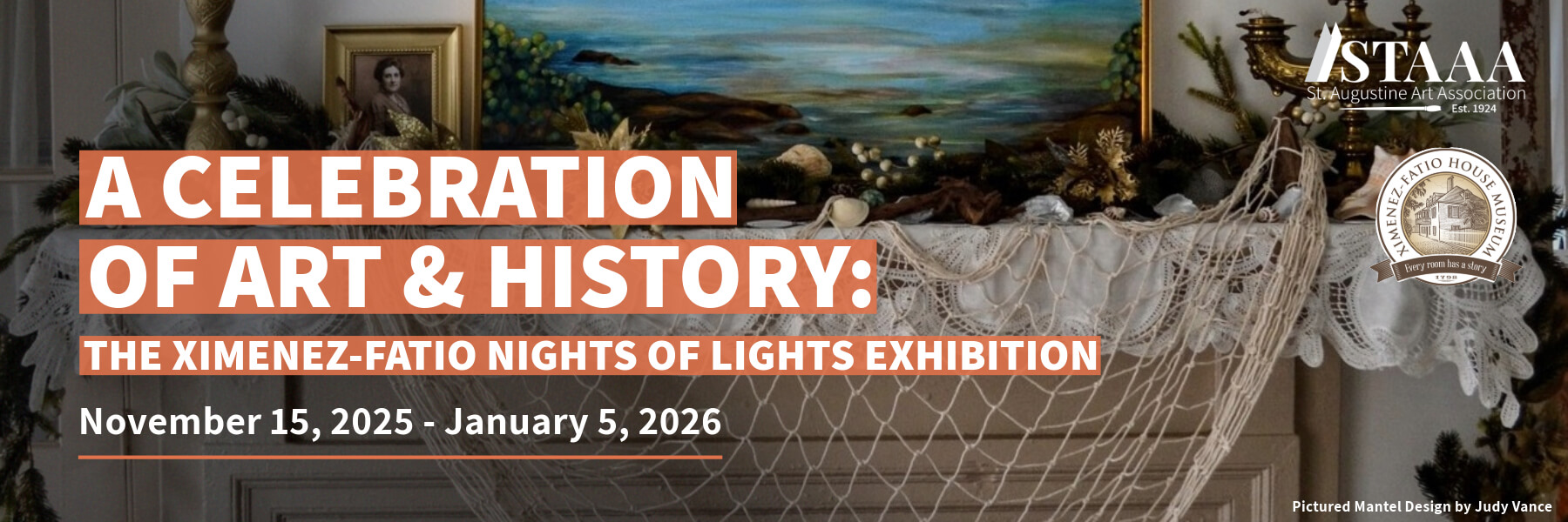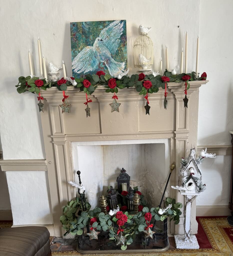 Celebrate art and history through this display on the fireplace mantels in Ximenez-Fatio House located at 20 Aviles Street, St. Augustine, FL 32084.