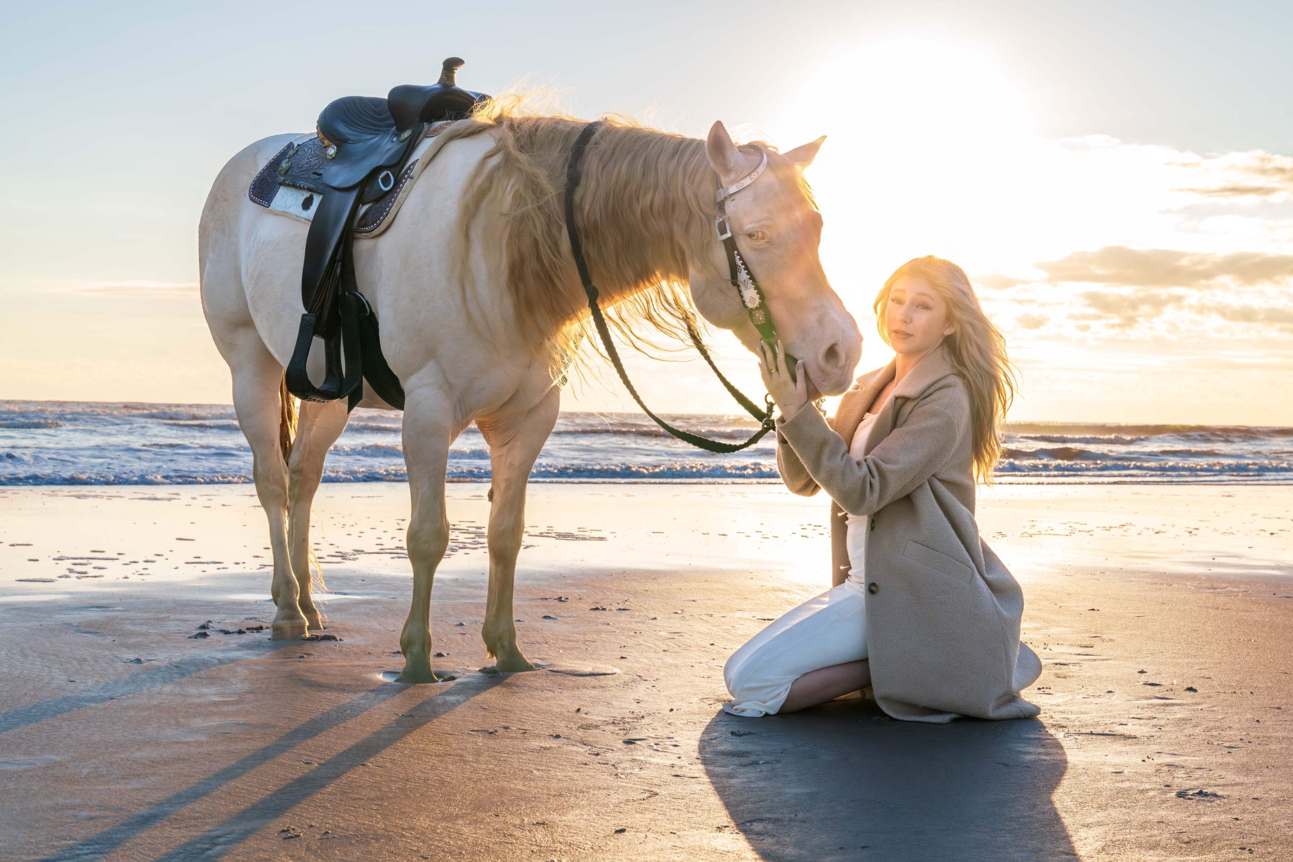 “Captured in golden coastal light, this image reflects the quiet trust and connection between horse and rider.